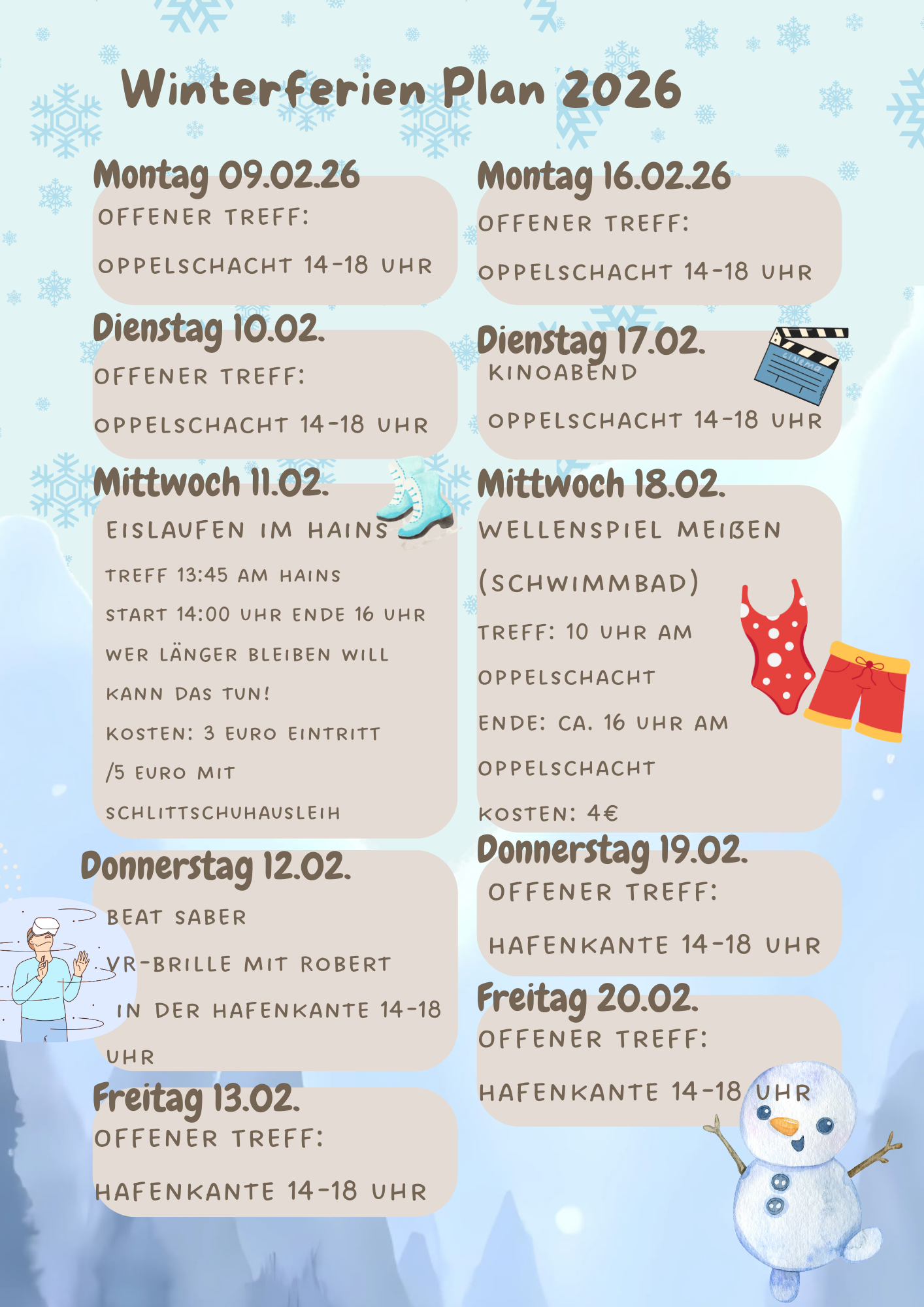- Yes. We are open! Ab 12.01.26 haben Oppelschacht UND Hafenkante wieder geöffnet!!!