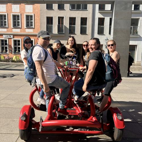 Als Gruppe ging es los zur schönen Hauptstadt Dresden, hier warteten ein witziges Gefährt auf uns.